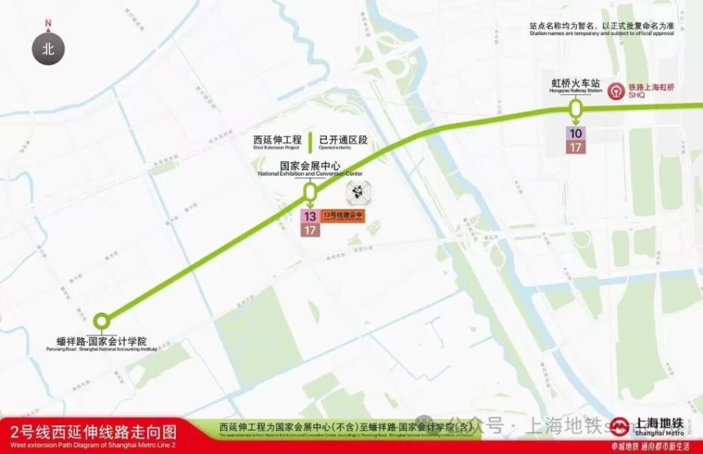 2号线西延伸工程——蟠祥路·国家会计学院站~国家会展中心站(不含)位于上海市青浦区,由既有2号线国家会展中心站向西延伸至蟠祥路·国家会计学院站。