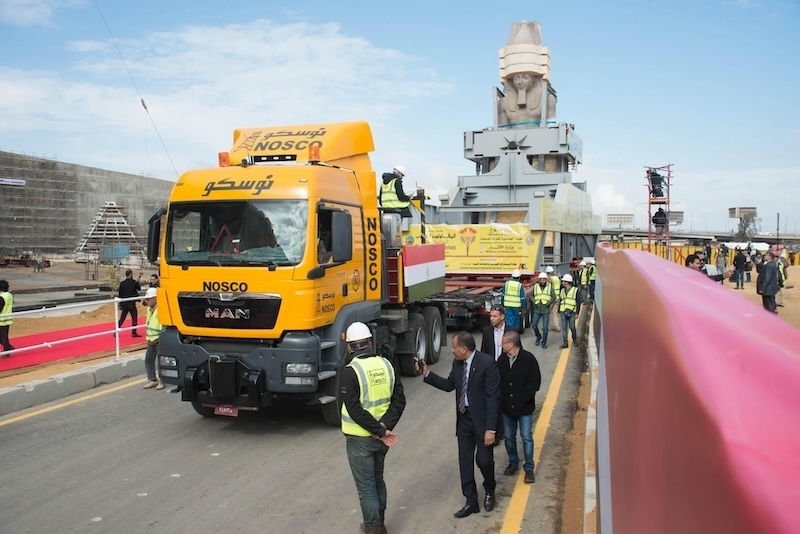 2018年,拉美西斯二世花岗岩雕像向大埃及博物馆运输