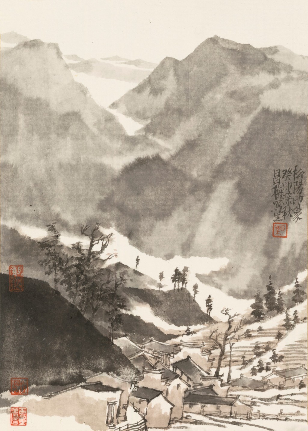 在大型美术馆以小幅作品示众是需要勇气的。这些小画笔触鲜活,如同分明的山脊线。枯笔淡墨间,山风穿谷、浪礁相击声隐约可闻。余昌梅说,每一个久居城市的画者,都是意在山林的远行者,他愿意用一场“小展”表达尽精微而致广大的艺术观。当城市藩篱中的人们驻足画前,雪域经幡、春山烟霭、山寺烟树,都成为个体生命的镜像。那些未完成的笔痕,也在邀请观众补全意境,完成心灵的回归。