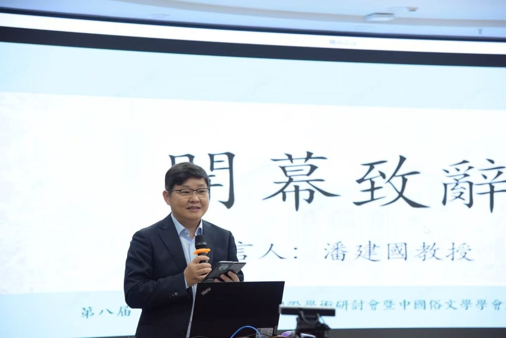 中国俗文学学会会长、北京大学中文系潘建国教授在致辞中提到,本次中国俗文学学会年会与“戏曲与俗文学”国际学术研讨会合办后,参与人数创下新高。他代表学会,向所有支持并参与本次会议的学者表示感谢。随后,潘建国教授从文体学角度,报告了近期的研究成果。