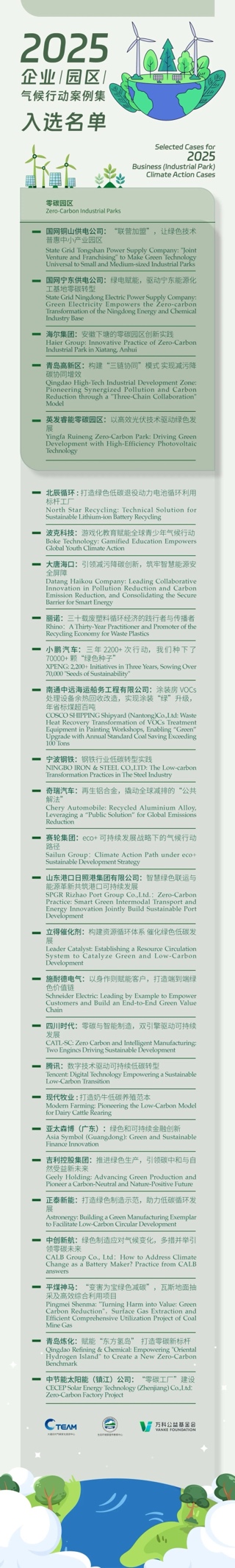 《2025企业(园区)气候行动案例集》收到了大量优质案例,体现了中国企业气候领域的坚定探索和显著成效。经专家评审后,北辰先进循环科技(青岛)有限公司的“打造绿色低碳退役动力电池循环利用标杆工厂等27个案例入选今年的案例集。
